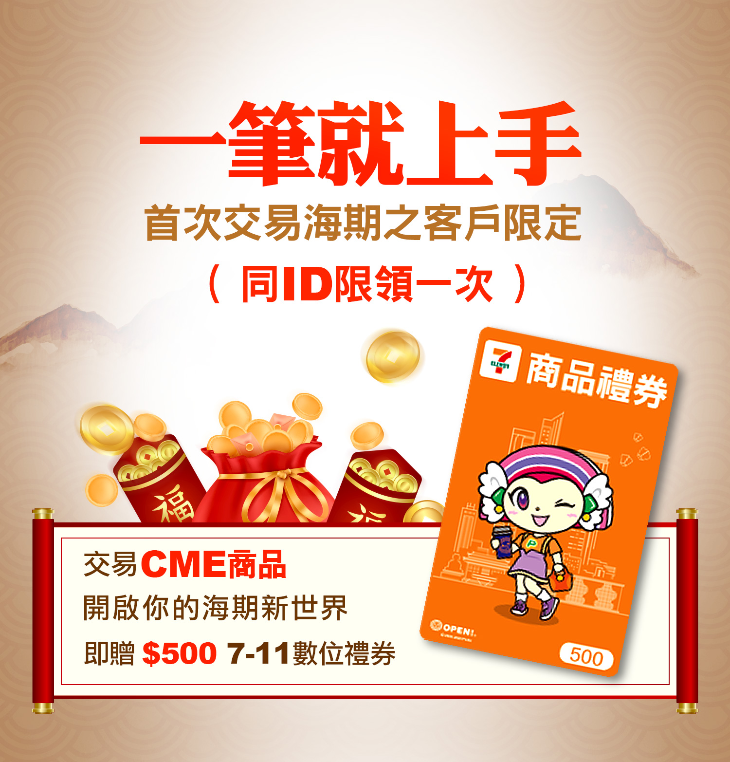 4. 首次交易海期活動贈獎說明,同ID最高可得500元數位禮券。