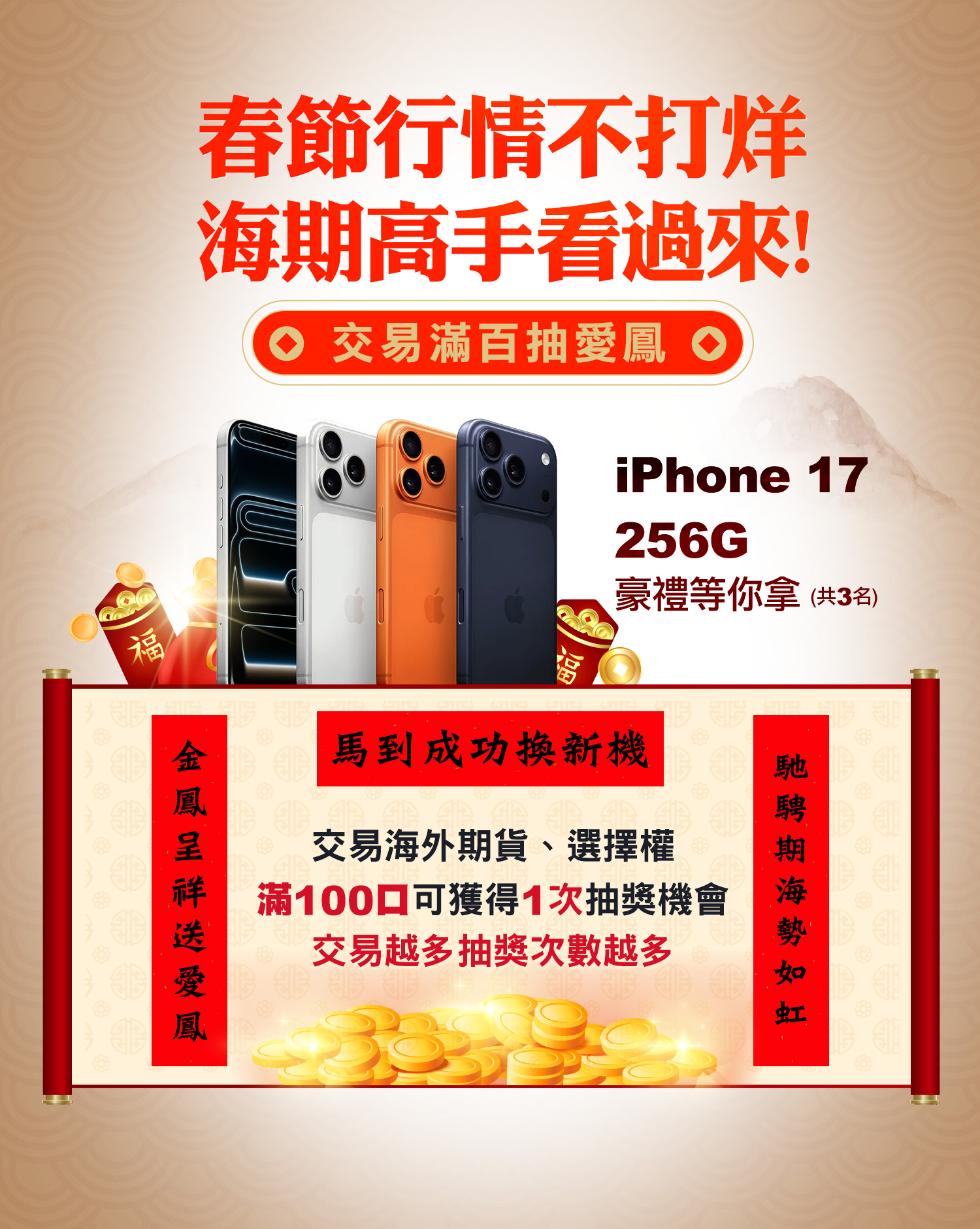 2. 活動資格說明,海期交易贈iPhone,排除法人及境外法人戶、公司戶、特殊低價客戶;首次交易海期與新春限定活動資格,排除法人及境外法人戶、公司戶、98戶、特殊低價客戶。