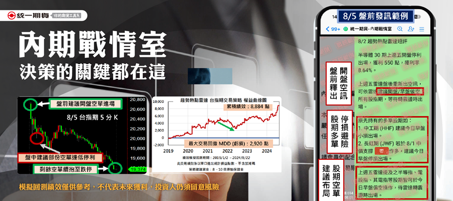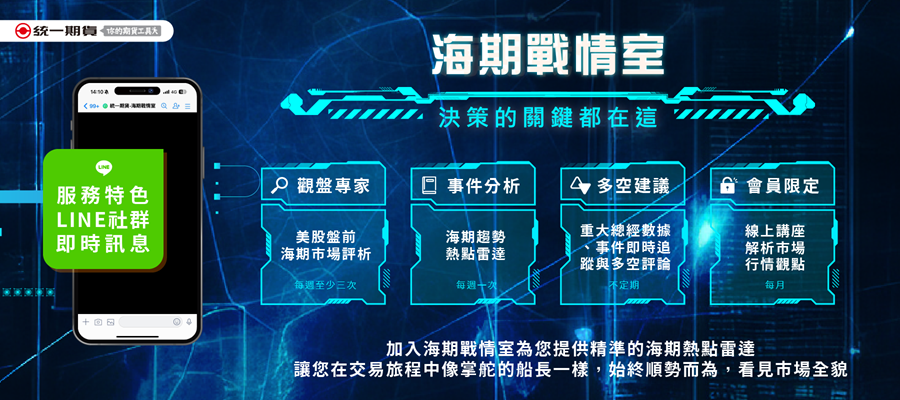 還在交易市場裡迷路?這裡有你要的方向、策略、訊息和陪伴!別再獨自摸黑前行,統一期貨期顧團隊讓你的交易不再迷茫!