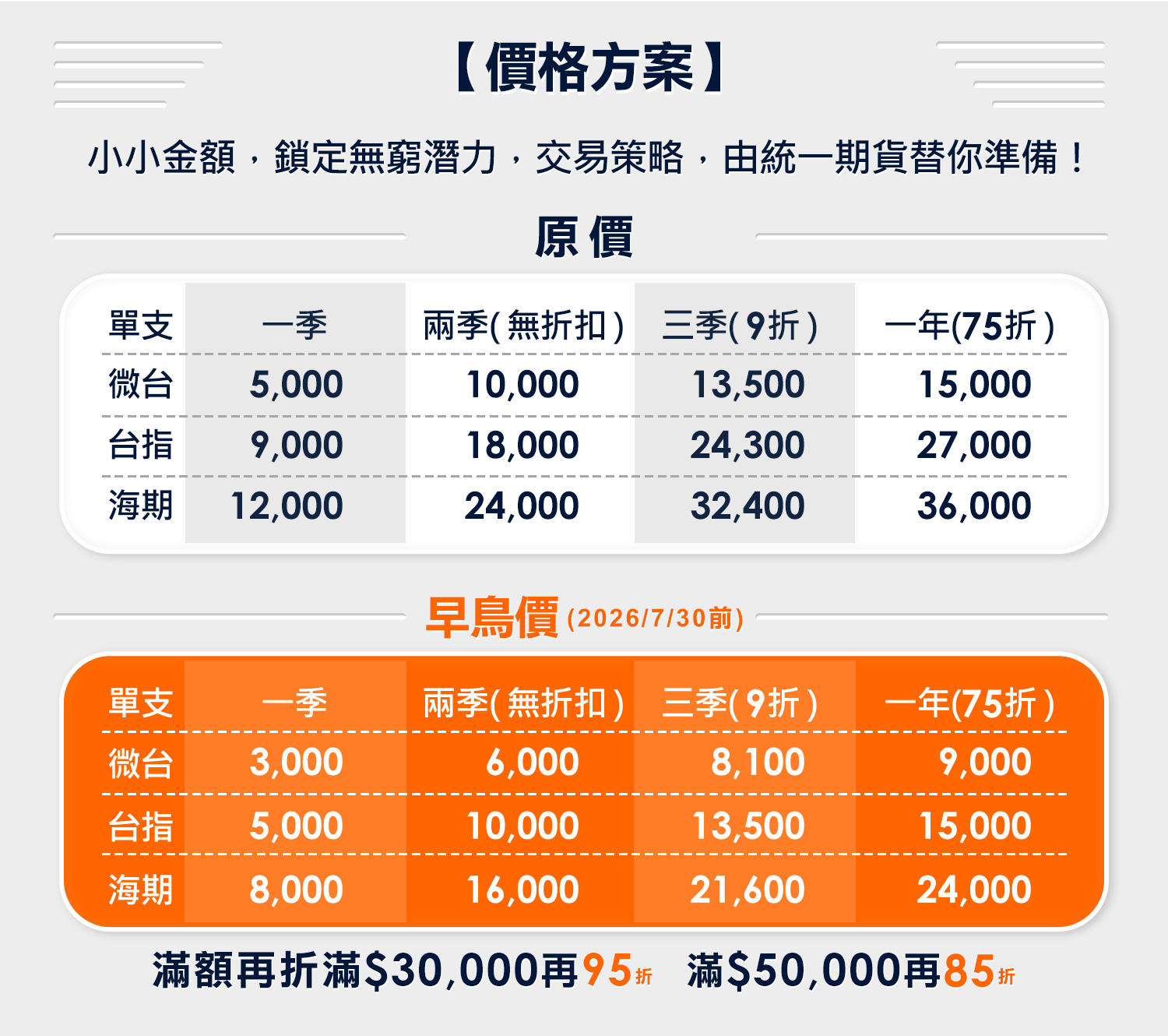 警語:期貨及選擇權交易財務槓桿高,交易人請慎重考量自身財務能力,所有交易衍生之風險及利益,由交易人自行負擔與享有。功能限制:交易/電腦系統會受資訊源及電腦穩定度之影響,其導致的交易損失,交易人應自行負責。