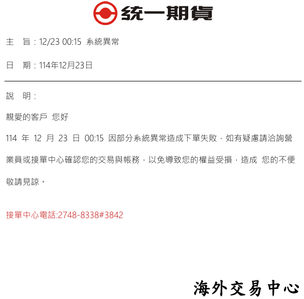 12/23 00:15 系統異常