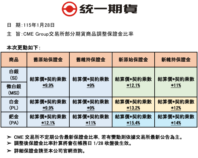 交易提醒:CME Group交易所部分期貨商品調整保證金比率