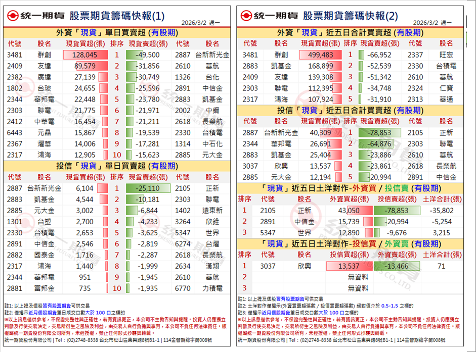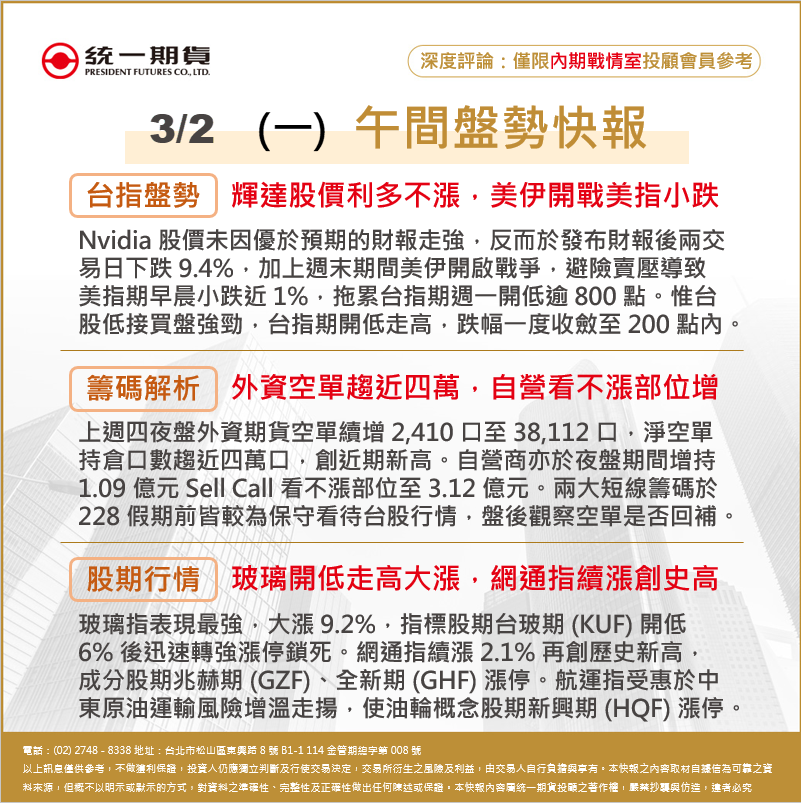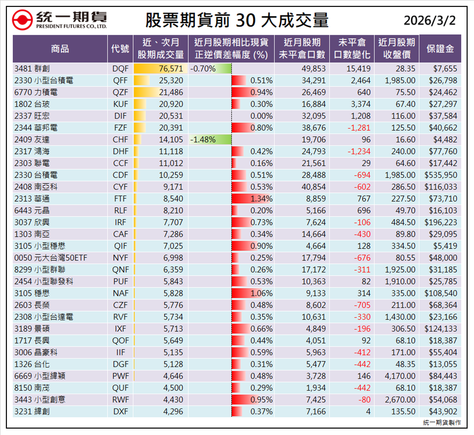每日數據大整理 盤前數據_夜盤期權籌碼快報 1150302 閱覽報告 盤前晨報_國內晨間快報 1150302 閱覽報告 午間快報_12 點午間盤勢快報 1150302 閱覽報告 盤後數據_3點 盤後籌碼快報 1150302 閱覽報告 盤後數據_每日期權盤後資料 1150302 閱覽報告 盤後午報_5 點期貨選擇權日報 1150302 閱覽報告 盤後數據_5 點股票期貨籌碼快報 1150302 閱覽報告 盤後數據_股票期貨前30大成交量 1150302 閱覽報告 盤後數據_股票期貨波動度排序 1150302 閱覽報告 第1頁/共1頁